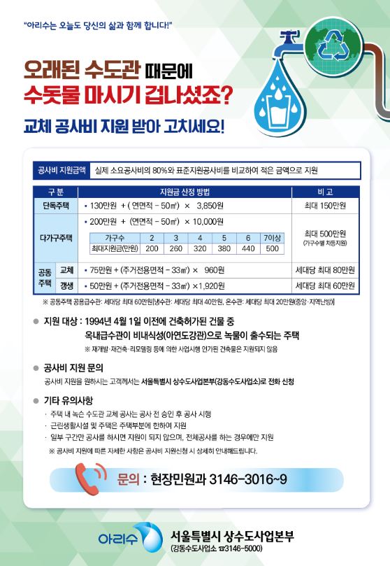 주택 내 녹에 취약한 급수관 교체 지원사업 안내