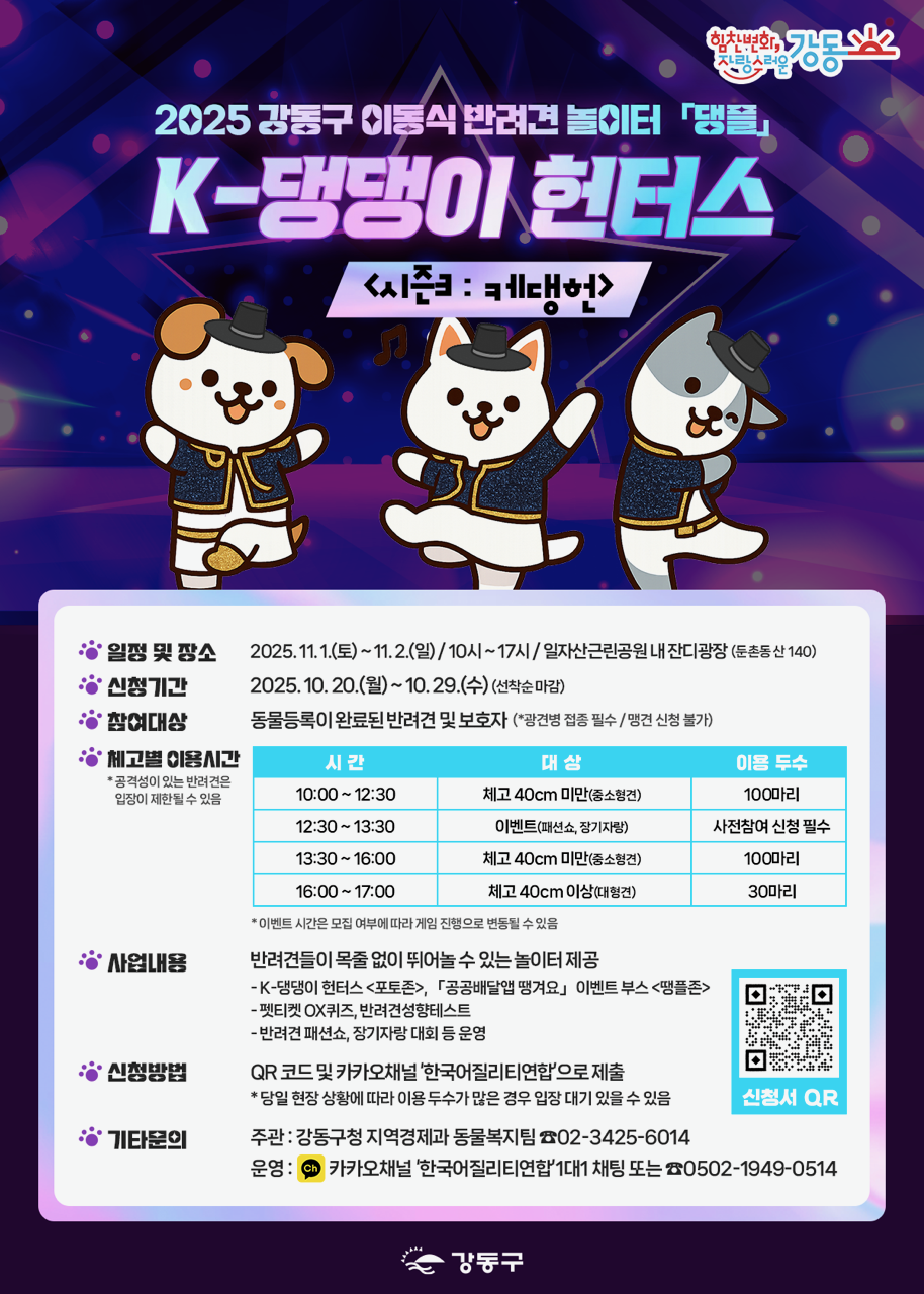 제목 | 2025 강동구 이동식 반려견 놀이터 댕플(5~6회차) 참가자 모집 안내 | ||