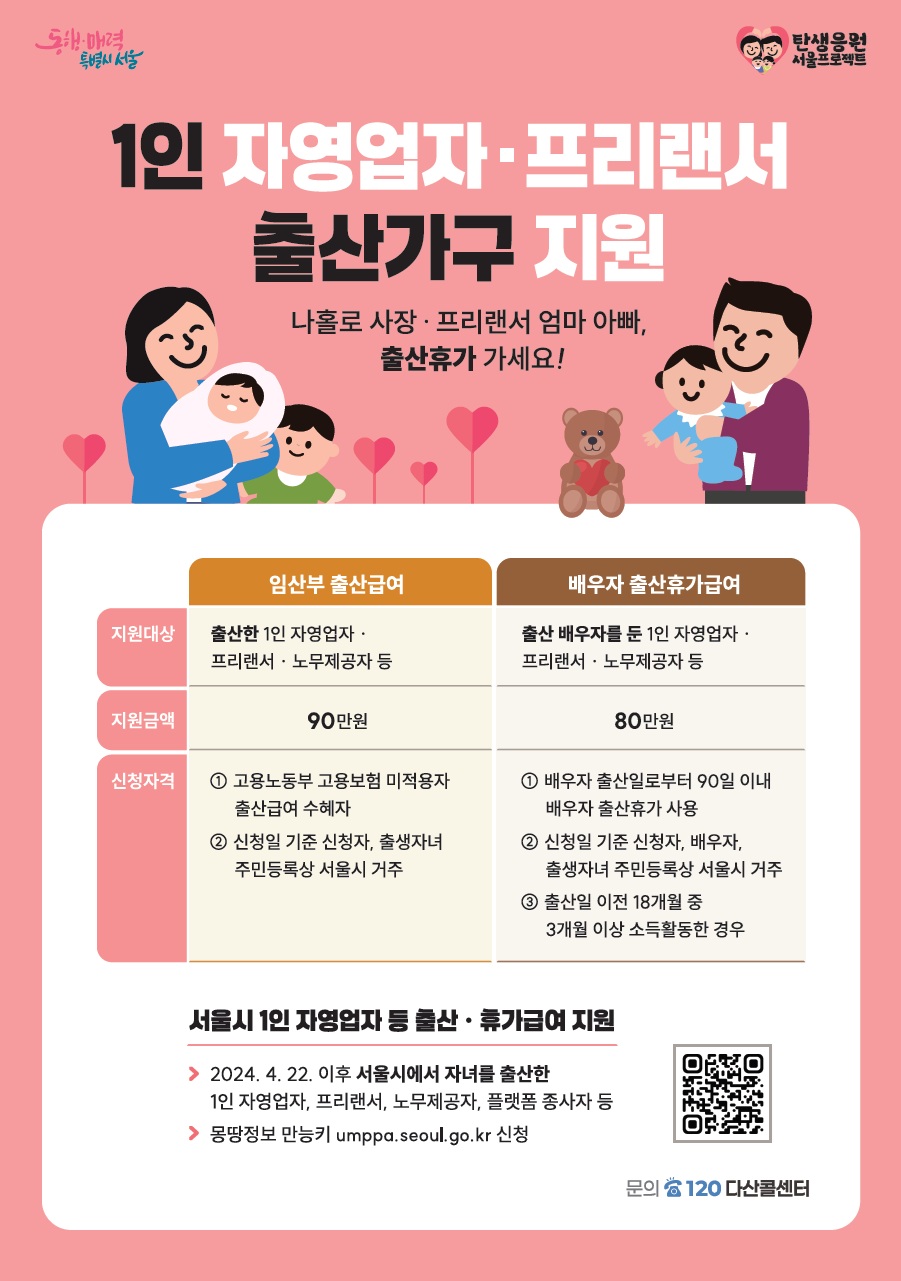 | 제목 | 1인 자영업자 프리랜서 출산가구 지원 정책 안내 | ||